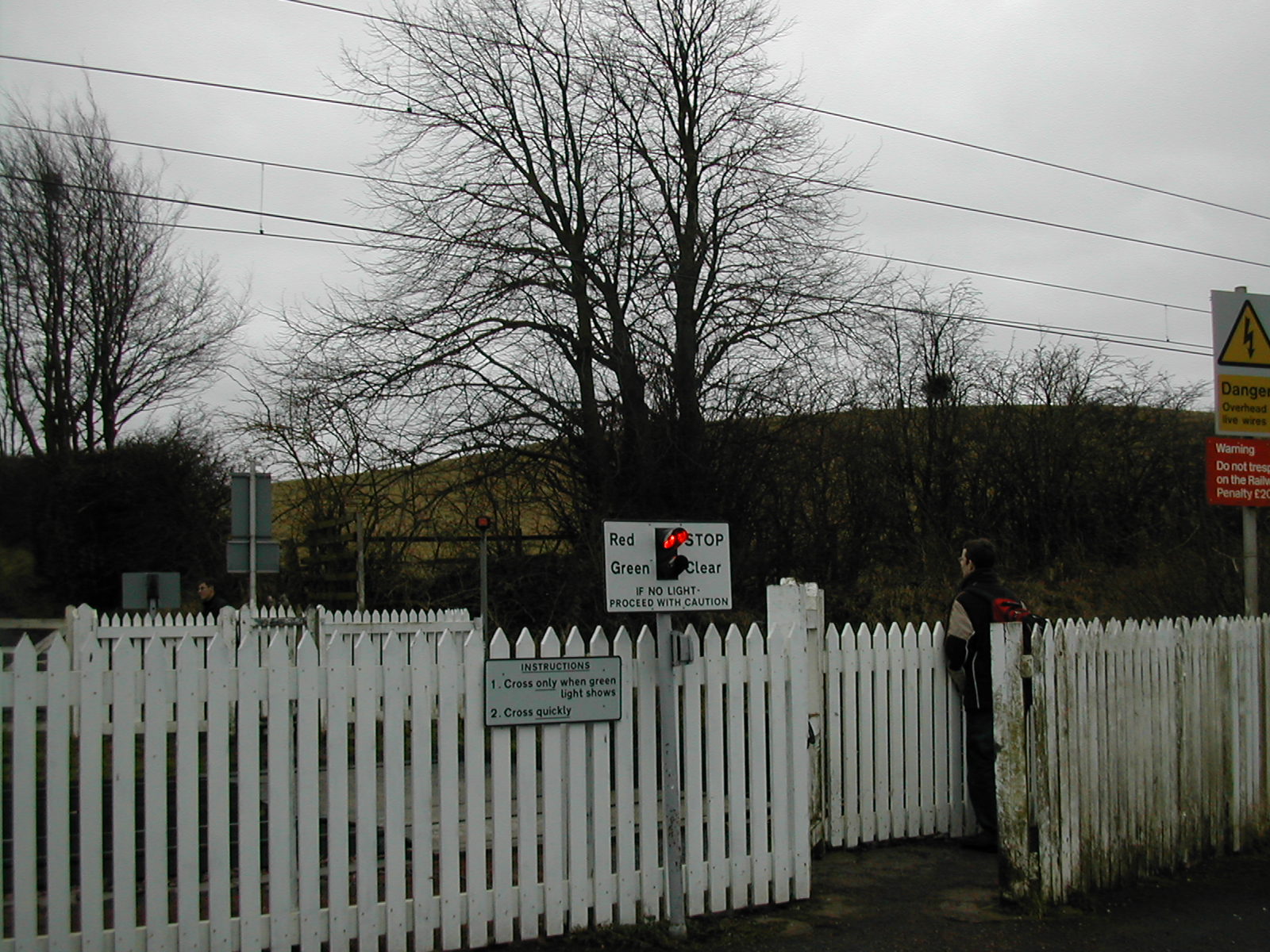 Railroad crossing near Currie with red warning lights for a train that probably never came
